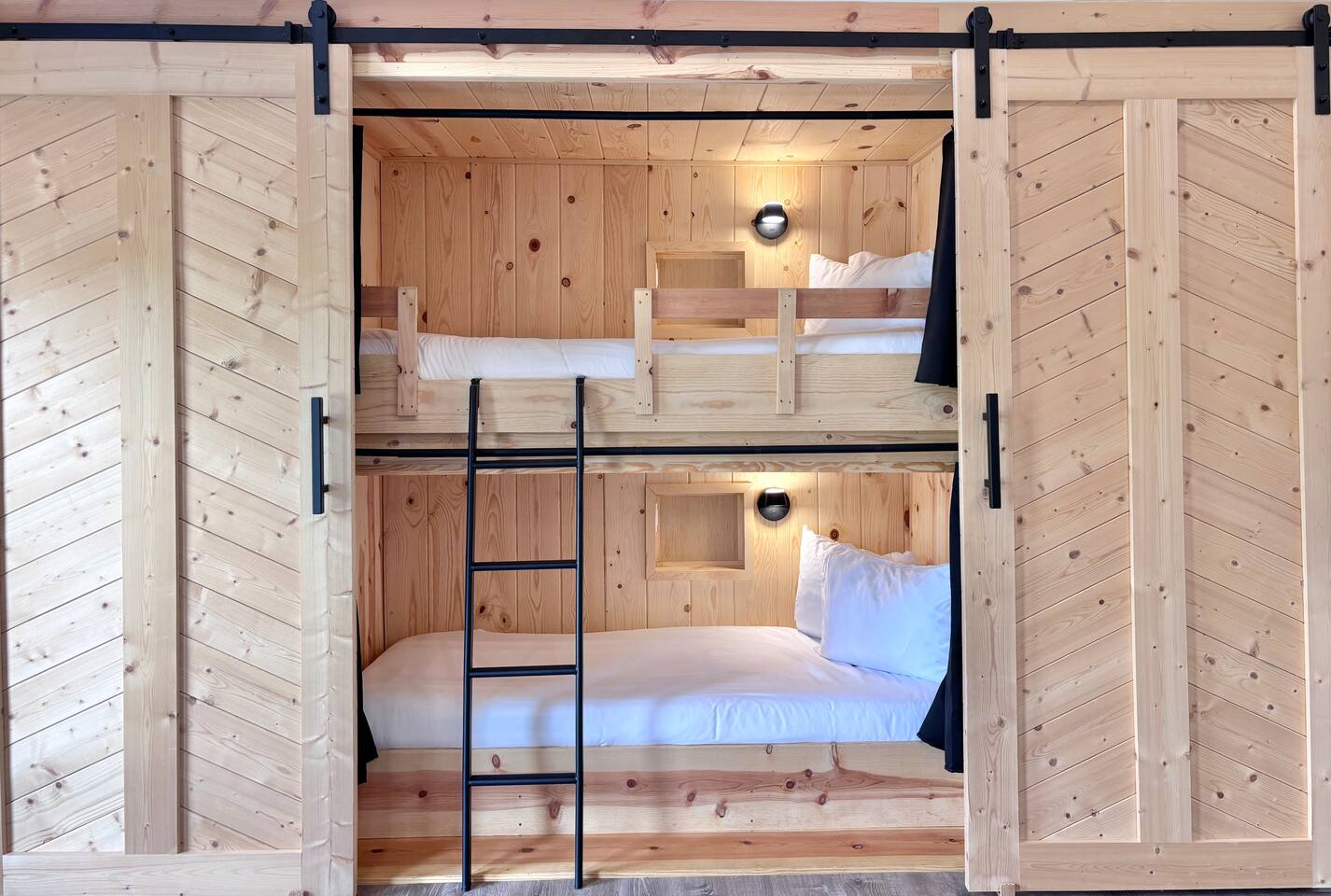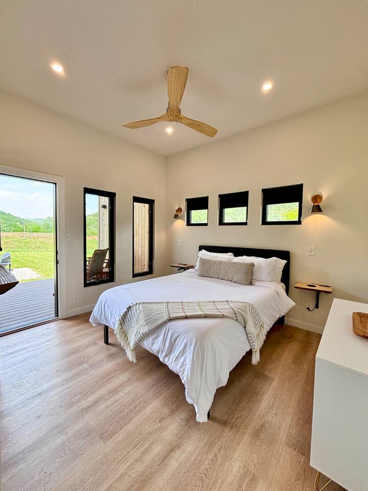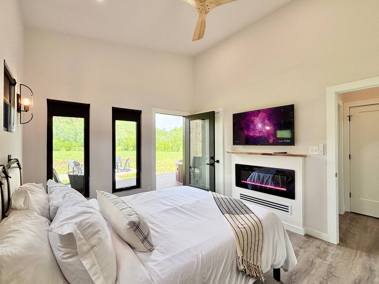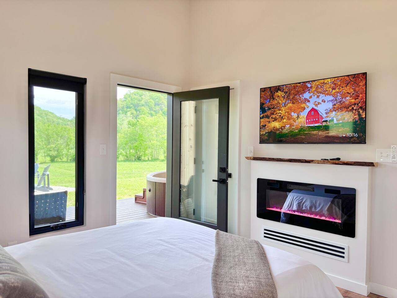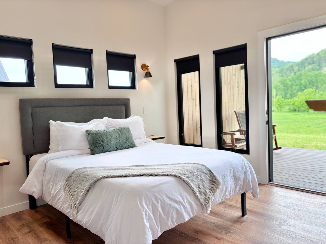 Three Suns Cabins Full Rental sleep a total of 29 guests and offers 8 individual cozy retreats with modern comforts and stunning views. Here's a detailed look at each cabin: Moonrise Meadow: Sleeps 4 guests, featuring a queen bed within a private bedroom and XL twin bunk beds in the main living area. Trail Tamer: Sleeps 2 guests, featuring a queen bed within the private bedroom. Wildflower Walk: Sleeps 4 guests, featuring a queen bed within the bedroom and XL twin bunk beds in the main living area. Perfect Perch: Sleeps 5 guests, featuring a queen bed in the bedroom and a lofted space with 3 XL twin beds (two standalone twin beds and one additional trundle/pullout twin bed) River Rascal: Sleeps 4 guests, featuring a queen bed within a private bedroom and XL twin bunk beds in the main living area. River’s Edge: Sleeps 4 guests, featuring a queen bed within the bedroom and XL twin bunk beds in the main living area. Knob Hill: Sleeps 2 guests, featuring a queen bed within the private bedroom. Hiker’s Haven: Sleeps 4 guests, featuring a queen bed within the private bedroom and XL twin bunk beds in the main living area. Each cabin includes: A comfortable bedroom with a queen bed, TV and an electric fireplace. A living room with an electric fireplace, flat-screen smart TV, and comfortable seating. A fully equipped kitchen with modern appliances. An enclosed private back deck with a hot tub overlooking the mountains. A private fire pit for evening gatherings. Outdoor charcoal grill. WIFI provided by Starlink Please note: If you are planning to host an event at Three Suns Cabins, please contact the host directly for details about small events and gatherings, as additional fees may apply.