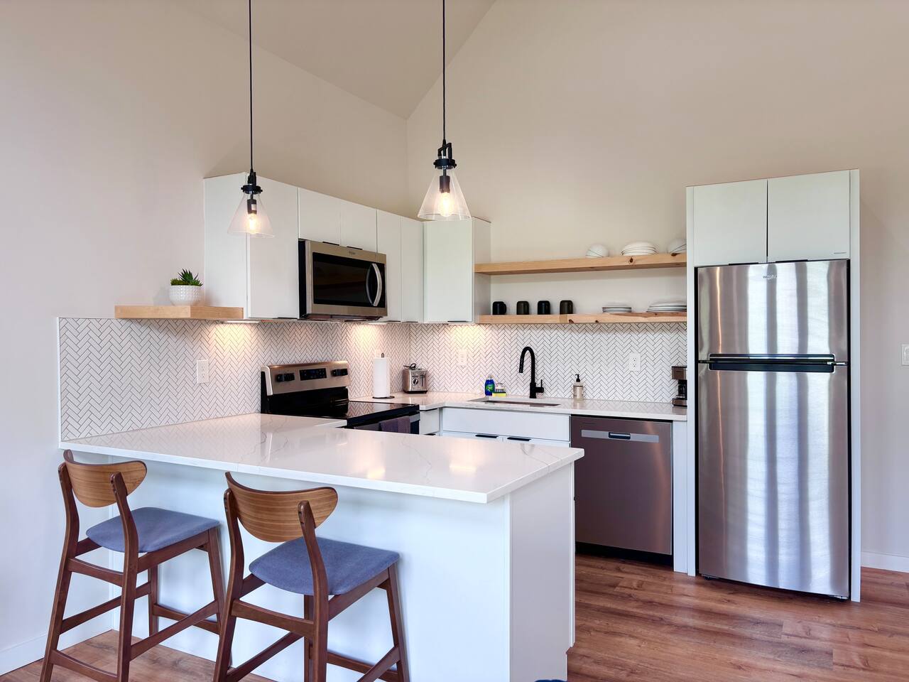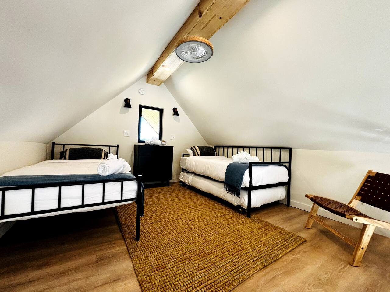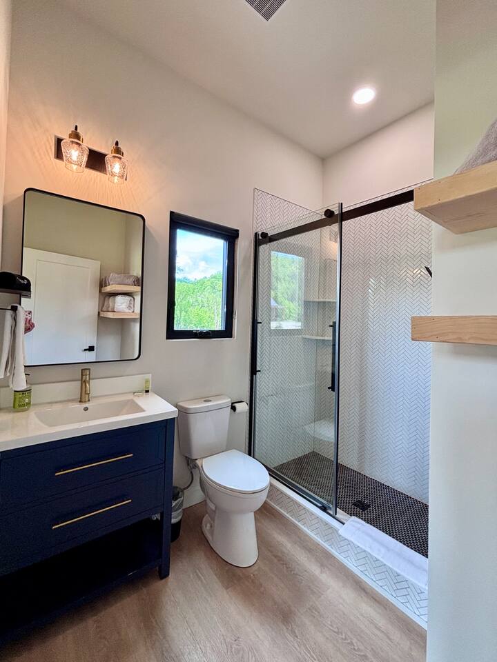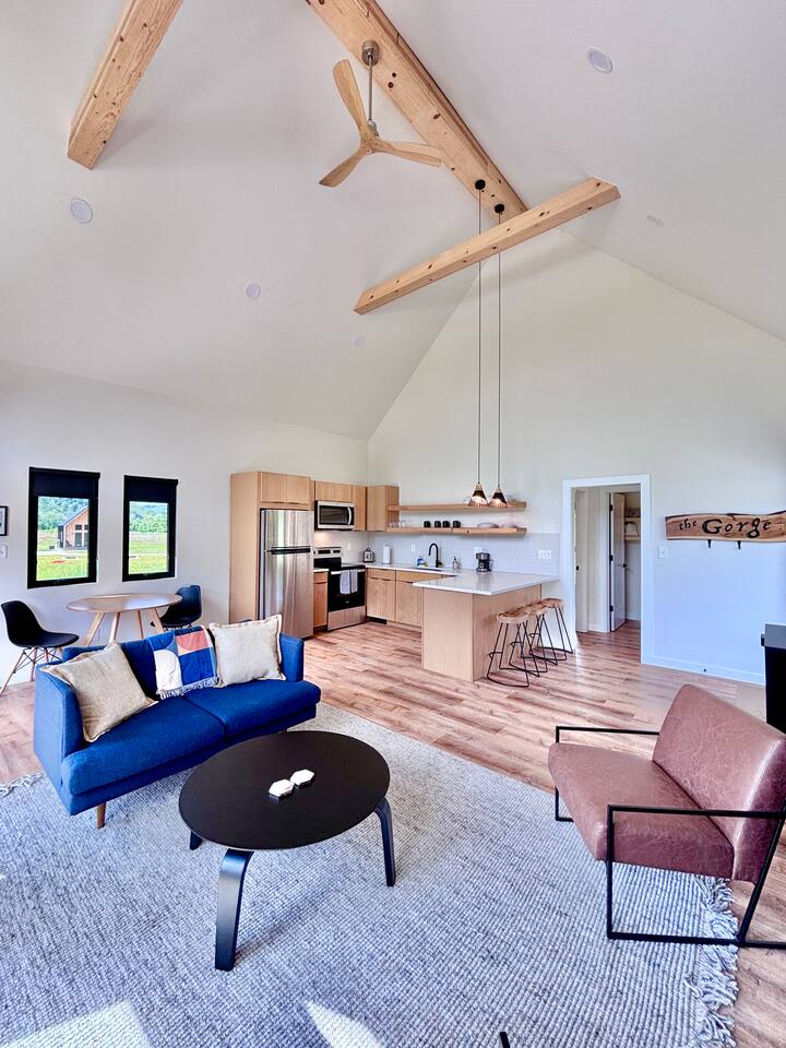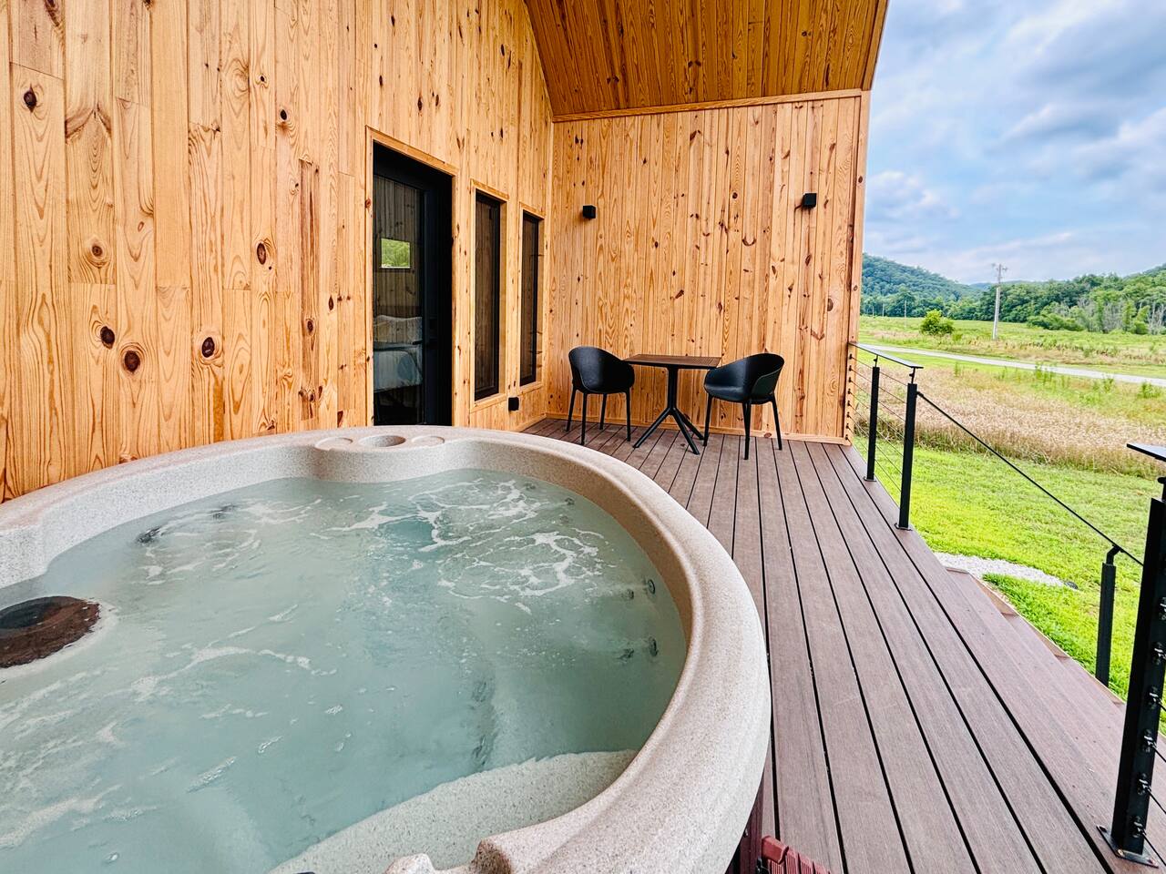 Three Suns Cabins Full Rental sleep a total of 29 guests and offers 8 individual cozy retreats with modern comforts and stunning views. Here's a detailed look at each cabin: Moonrise Meadow: Sleeps 4 guests, featuring a queen bed within a private bedroom and XL twin bunk beds in the main living area. Trail Tamer: Sleeps 2 guests, featuring a queen bed within the private bedroom. Wildflower Walk: Sleeps 4 guests, featuring a queen bed within the bedroom and XL twin bunk beds in the main living area. Perfect Perch: Sleeps 5 guests, featuring a queen bed in the bedroom and a lofted space with 3 XL twin beds (two standalone twin beds and one additional trundle/pullout twin bed) River Rascal: Sleeps 4 guests, featuring a queen bed within a private bedroom and XL twin bunk beds in the main living area. River’s Edge: Sleeps 4 guests, featuring a queen bed within the bedroom and XL twin bunk beds in the main living area. Knob Hill: Sleeps 2 guests, featuring a queen bed within the private bedroom. Hiker’s Haven: Sleeps 4 guests, featuring a queen bed within the private bedroom and XL twin bunk beds in the main living area. Each cabin includes: A comfortable bedroom with a queen bed, TV and an electric fireplace. A living room with an electric fireplace, flat-screen smart TV, and comfortable seating. A fully equipped kitchen with modern appliances. An enclosed private back deck with a hot tub overlooking the mountains. A private fire pit for evening gatherings. Outdoor charcoal grill. WIFI provided by Starlink Please note: If you are planning to host an event at Three Suns Cabins, please contact the host directly for details about small events and gatherings, as additional fees may apply.